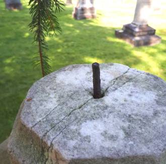 Gravestone at the Castleton Cemetery, Ontario, set into a blob of concrete.