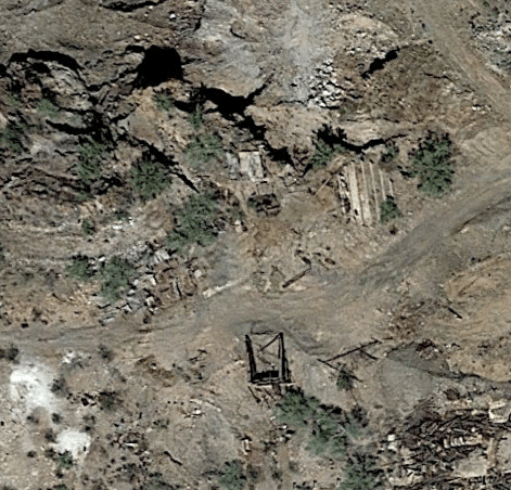 One aspect of the site that I was really interested in seeing, was whether or not I would be able to identify through aerial photos available online where some of the structures came from, and there was a lot of success here! Luckily there isn’t too much in the desert to obscure mine shaft openings from the air besides the shadows of giant saguaro cactus all over the place. In the screenshots from Google Earth below, you can see the stark difference between early 2017 and 2022! It is clear that along with several buildings that are still in situ in the town centre, additional structures were moved to the site in order to preserve them. You can also see how close the modern mine has gotten to the edges of the historic site, with fences to the north and west sides to protect visitors from the active operation. Unfortunately, that is also where portions of the historic mine were also located, making them inaccessible today.